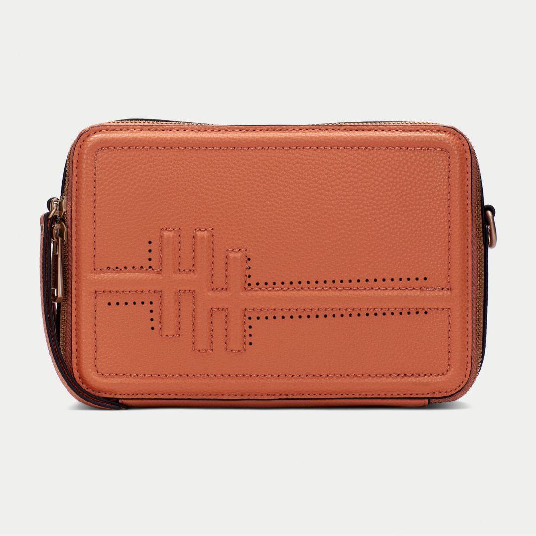 Compact bag. Adjustable strap with gold metal hardware for a comfortable, custom fit. Gold zipper closure, which secures the contents of the bag. Embossed logo on the front, adding a distinctive touch. Perfect to complement casual or formal looks, maintaining a versatile and functional style.