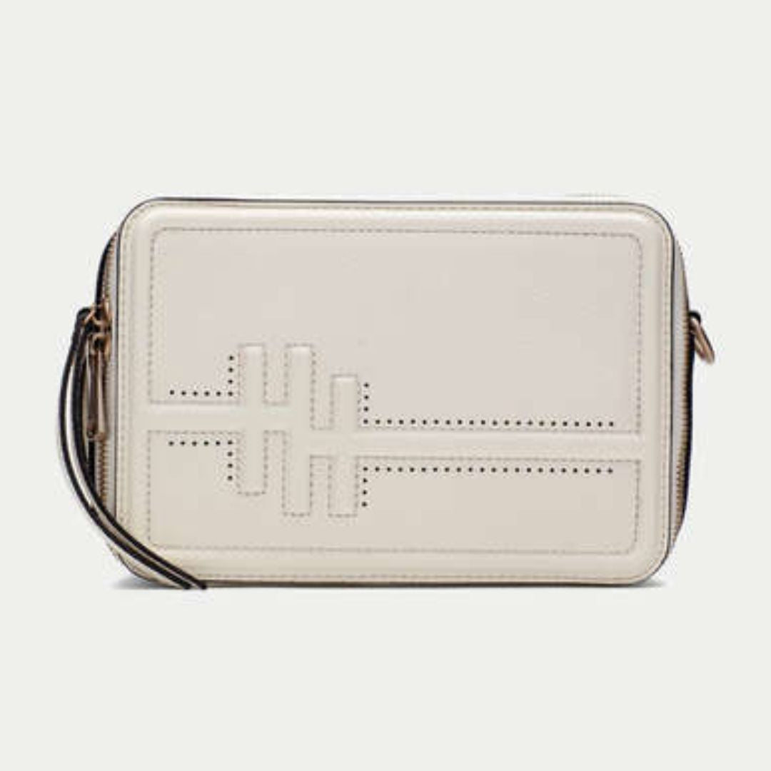 Compact bag. Adjustable strap with gold metal hardware for a comfortable, custom fit. Gold zipper closure, which secures the contents of the bag. Embossed logo on the front, adding a distinctive touch. Perfect to complement casual or formal looks, maintaining a versatile and functional style.